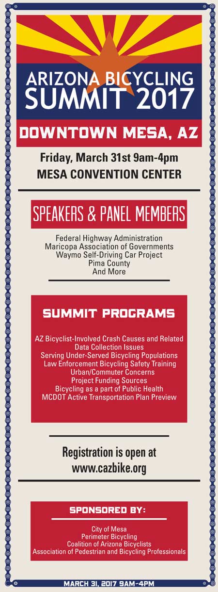 Sponsored by: Coalition of Arizona Bicyclists, the City of Mesa, Perimeter Bicycling Association of America, Association of Pedestrian and Bicycling Professionals.