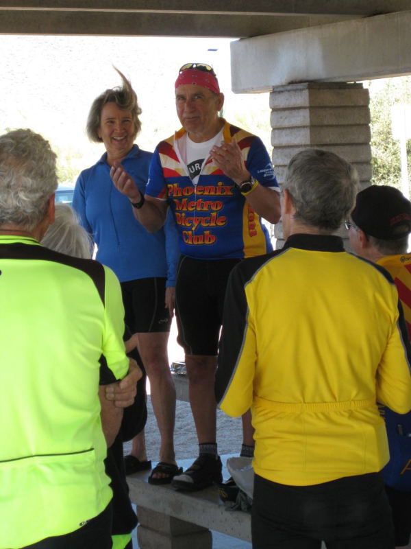Regulars who  ride from Ahwatukee / Tempe to the picnic site at Usery Mountain Regional Park, from  left to right, Walt Paciorek who has led a ride before the potluck each year for six  years, Roy Kopel, Bob Prochaska, long-time ride leader of the Sun Lakes Bicycle